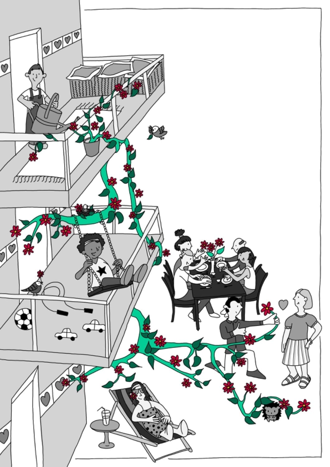 Un exemple d'habitation vivante, illustré par Anne-Charlotte Vivant.